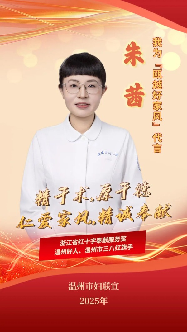 原标题:《“我为瓯越好家风代言”——朱茜:精于术,厚于德,仁爱家风,精诚奉献!》