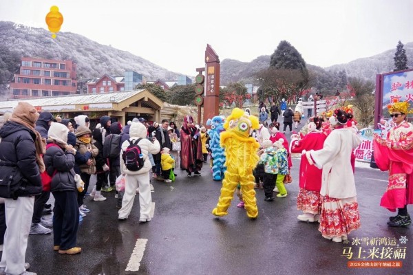 元旦假期,位于重庆近郊的金佛山景区开展“冰雪祈鸿运·马上来接福”主题活动,为游客呈现一场融合国风巡游互动、非遗集市、冰雪盛宴、山海经主题灯展的新年纳福之旅,让游客在祈福氛围中喜迎新年。