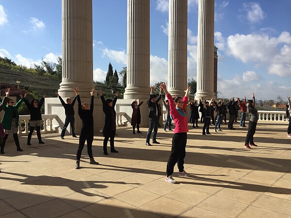 此次开展的“工间操”活动由两名体育学院前段时间专门选派到国家体育总局对强健关节活力操进行系统学习的研究生担任主要教学工作,另外,还有几名曾参加云南省“科学健身全民健康”活动展演的研究生进行辅助教学。