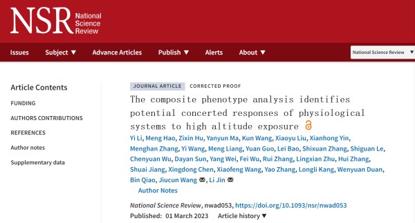 近日,复旦大学金力院士与王久存教授团队在National Science Review期刊发表题为The composite Phenotype Analysis Identifies Potential Concerted Responses of Physiological Systems to High Altitude Exposure的论文。该研究基于822名汉族男性在高原习服4个阶段(平原期、急性期、慢性期和脱习服期)的33个生理表型变化情况,提出并开发了纵向复合表型分析方法(Composite Phenotype Analysis, CPA),构建了覆盖33个表型的动态关联网络,提取出9个纵向复合表型来表征生理系统,进而发现复合表型间存在3个新的强关联,说明生理系统对高原低氧环境响应具协同效应。不同于横断面数据分析方法,CPA能够发现多个生理系统之间的隐藏关联和系统间交互的动态变化,是多个生理系统间纵向关联研究的有效研究策略。