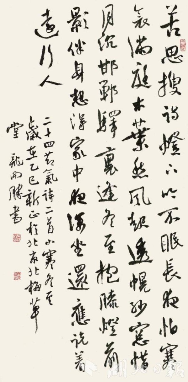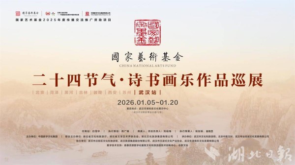 湖北日报讯(记者海冰、通讯员刘沧海)1月5日,“二十四节气·诗书画乐作品巡展(武汉站)”在武汉琴台月湖知音文化展示中心拉开帷幕,为公众带来一场集诗、书、画、乐于一体的中华传统文化艺术盛宴。展览系文化和旅游国际传播项目、国家艺术基金2025年度传播交流推广资助项目。