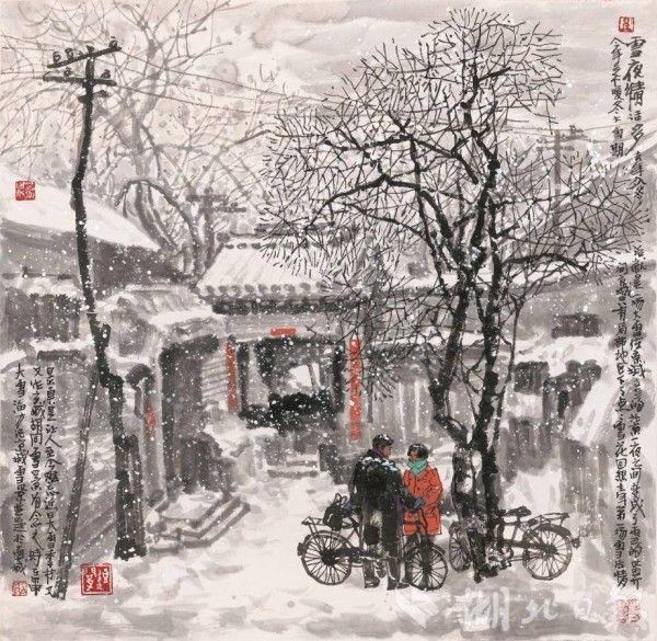 马海方《 雪夜情话多》68x70cm 2004年