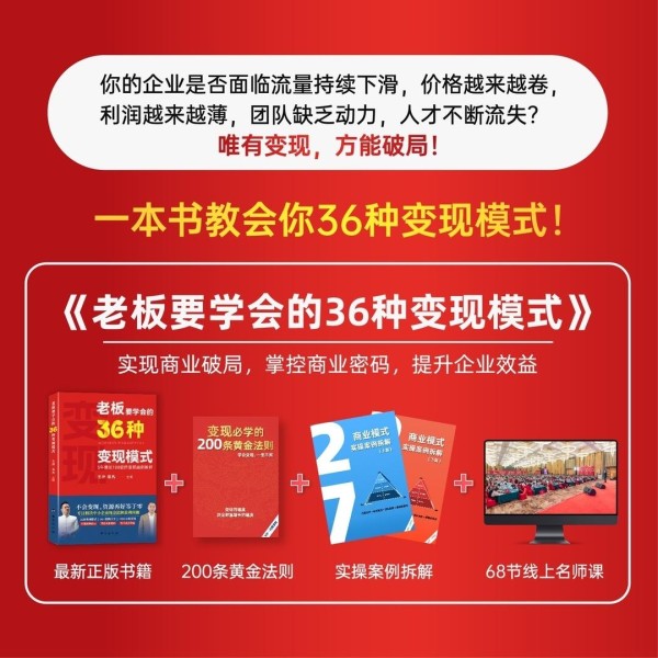 这是王冲老师的最新力作,在36种模式基础上又新增36种创新变现方式,配套68集视频课程,堪称商业变现的"百科全书"。