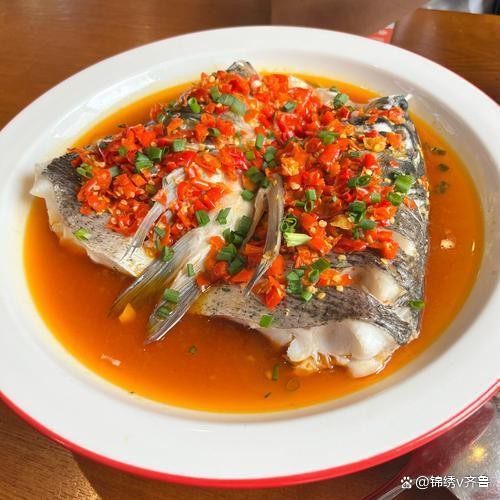 6. 蒸鱼头:在蒸锅中烧开水,将鱼头放入蒸锅,蒸约10-12分钟,蒸至鱼头肉质完全熟透。根据鱼头的大小,调整蒸制时间。