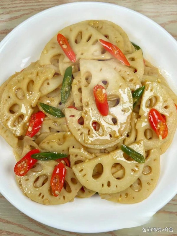 食材准备:莲藕、五花肉、蒜末、小米辣、葱段。