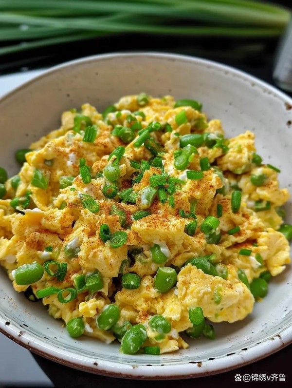 3. 炒鸡蛋:热锅凉油,加入打好的鸡蛋液,稍微搅拌,待鸡蛋液凝固后,翻炒至金黄,盛出备用。