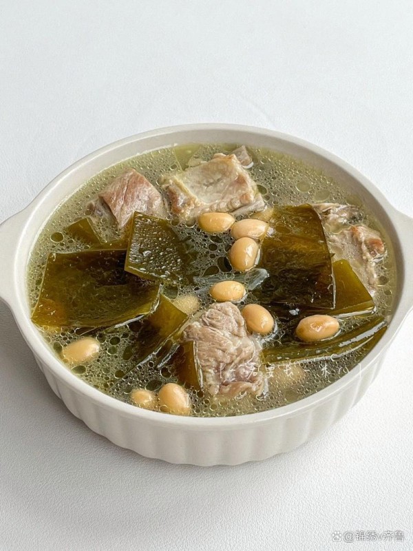 2、黄豆清洗干净,提前浸泡半个小时。海带提前浸泡,泡发后清洗干净,沥干水分切成小块。
