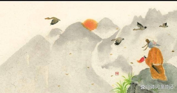 大顺城建立后,宋军在多次战斗后逐渐稳定了西北局势。范仲淹在巡视大顺城时,创作了《渔家傲·秋思》一词。词中展现了他忧国忧民的情怀,语气悲壮高昂,表现了他在孤军守边时内心的孤寂与坚持。 这首词的开头,异字独特,勾画出了一幅秋风萧瑟、孤雁南飞的画面。词中用简洁的笔触,描绘出大漠孤烟、长河落日的荒凉景象,结合闭字,整个画面愈加寂寥,仿佛听到了远方战场上的号角声与鼓声,传达出一种边塞的孤独和沉重。 进入下半部分,词调转为思乡之情,范仲淹作为一名文人,肩负着保卫边疆的重任,日复一日,难免生出对故乡和亲人的思念。词中家万里与酒一杯的对比,表现了身处边塞的他那无尽的孤独与愁绪。这一杯浊酒,虽然能暂时消解内心的愁苦,但如何能解得了那种思乡之情呢?