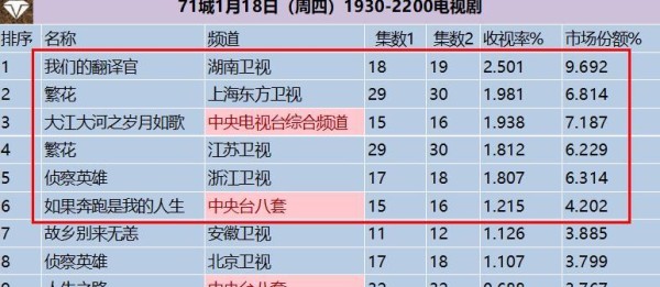"解码收视率:中国热播电视剧盘点" 你是否也曾被电视剧的收视率所吸引?《我们的翻译官》的高收视率是否与其剧情质量相符?《繁花》通过怎样的手法成功吸引观众?《大江大河之岁月如歌》是如何打动观众的?本文将深入解析这些热门电视剧的收视率背后的真相,为你揭示这些剧集的魅力所在。首先,《我们的翻译官》以2.501%的高收视率备受关注。然而,观众对于剧情的评价却并不乐观。有观众表示剧情做作,对话不自然,甚至男女主角的表演也备受质疑。编剧的不足之处让观众大为失望,片中的一些细节处理也让人觉得有些匆忙。