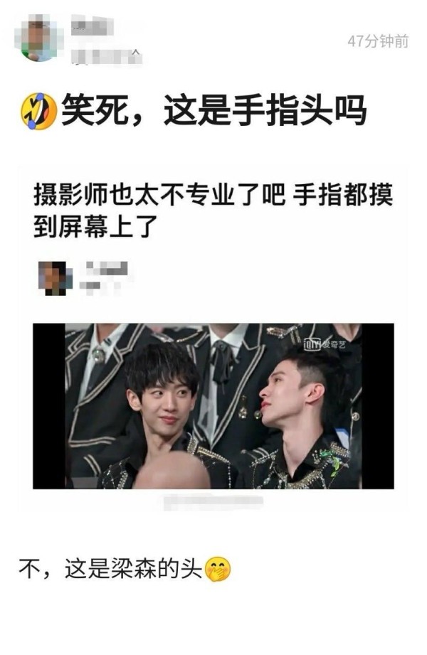 之前还有人吐槽《青春有你3》的摄像师非常不专业,拍摄选手的时候竟然不小心让自己的“手指”入镜。其实并不是,那可不是“手指”,而是坐在前排的梁森的“头”,是不是直接“照亮你的美”呢!