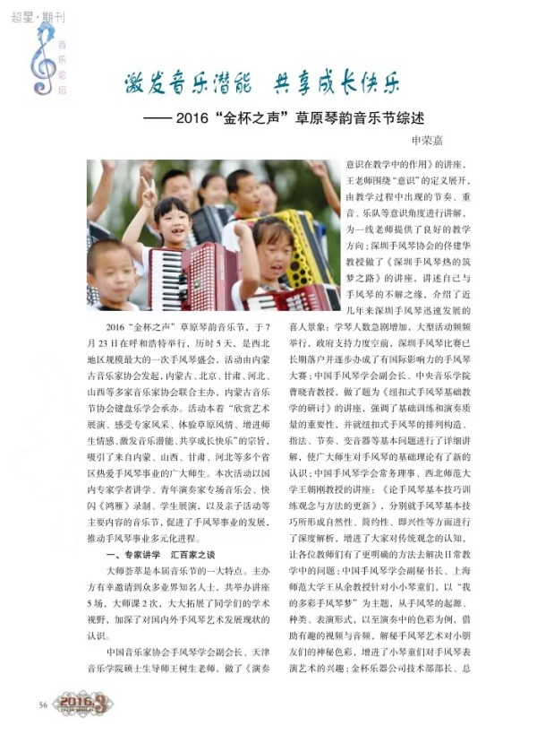 激发音乐潜能 共享成长快乐——2016“金杯之声”草原琴韵音乐节综述