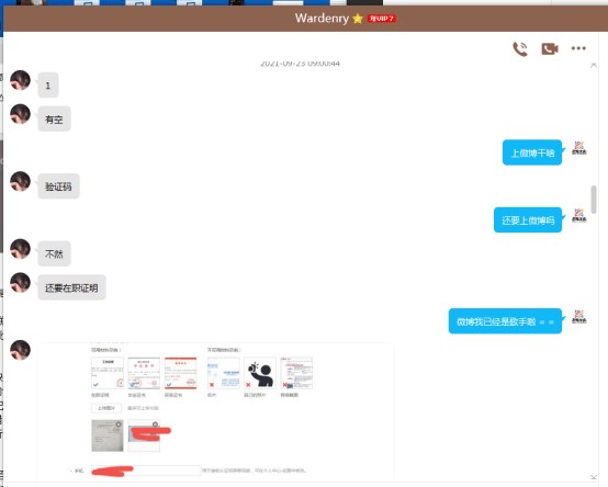 还有一个案例,一个网友没有自己的百度百科,被告知微博认证为“歌手”,就可以免费帮忙创建百科。于是相信了他们的话。让他们上了自己的微博号,然后收到各种验证码,说这个验证码是需要填写到创建百科的页面,之后还让这个网友把在职证明发过去给他们。