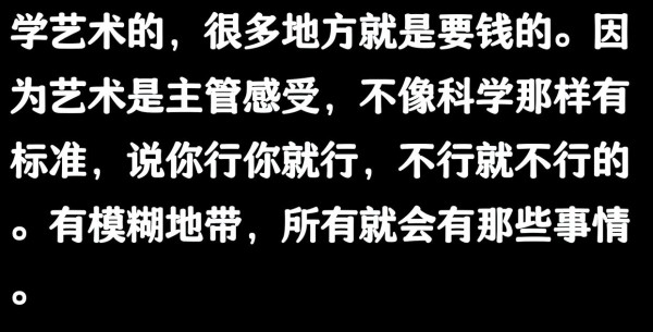 在艺术圈中,资源和包装的重要性往往超过单纯的天赋和努力。包装、营销和资源往往比单纯的努力和天赋更为重要。回想许多年前,我曾就读的那所艺术学院中的情形,或者现在依然存在的这种现象,正如一位同事所言,在艺术领域中,存在一个不成文的规则,那就是需要拜师和寻找资源。这种拜师的费用从几万到十几万,甚至几十万不等,有了老师的指导,考取艺术学院的几率会大大增加。无论是音乐还是舞蹈,基本上都遵循这样的规则。相对而言,美术专业的情况会稍好一些。