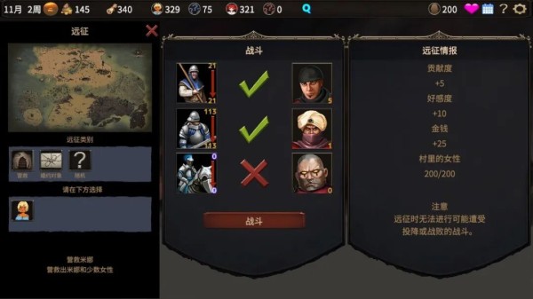 总之紧接着咱们就作为代理村长上任,不得不亲自面对这样棘手的问题,正常解法就是多生孩子多攒钱多训练士兵,当咱们兵力数倍于敌人时,根本没什么好怕的,甚至可以发起远征去蛮族那边搞点钱花花,攻守之势完全逆转。另一种就是绥靖解法,但还是绕不开女人与孩子。
