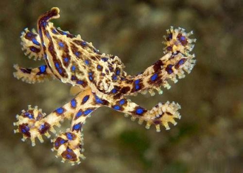 17. 所有章鱼物种对于人类来说都是有毒的,但只有一种是致命的(蓝环章鱼)。