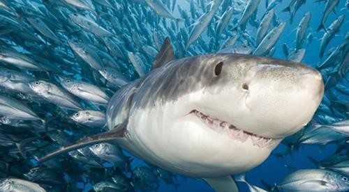 4、鲨鱼会在捕食时翻白眼。鲨鱼张口咬住猎物时会将眼球向内翻转,呈现翻白眼的样子,此举是为了保护眼睛不被猎物抓伤。