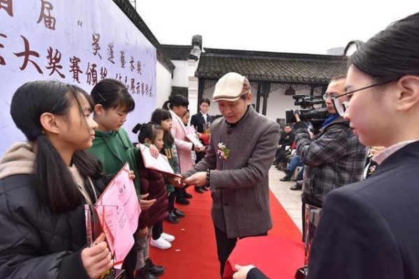 12月23日上午,桐乡市首届“吴蓬艺术奖”暨青少年书画大奖赛颁奖、作品展开幕仪式在吴蓬艺术院举行。此次大奖赛由桐乡市文化广电新闻出版局、桐乡市教育局、桐乡市文学艺术界联合会共同主办。市人大常委会副主任费玉林,副市长徐剑东等出席活动并为获奖者颁奖。