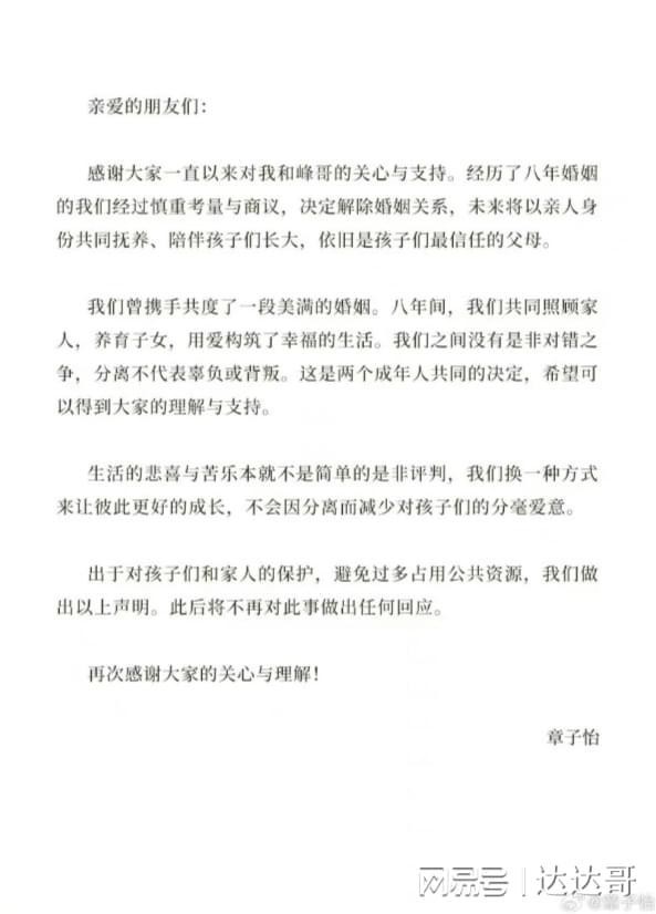 章子怡的声明。