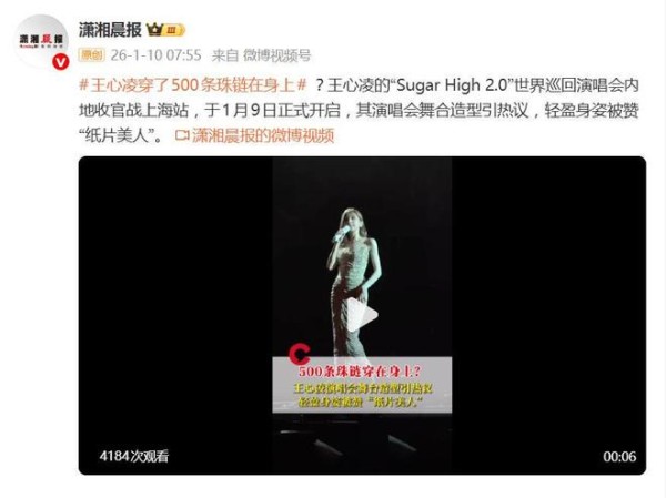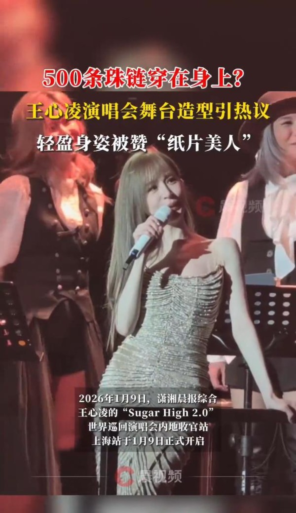 据1月9日报道,王心凌“Sugar High 2.0”世界巡回演唱会的上海收官站,硬是靠一套舞台造型引爆了热搜。当一身密布珠链、宛如流动星光的她出现在舞台上时,网友的惊叹瞬间刷屏:“这是穿了500条珠链在身上?”