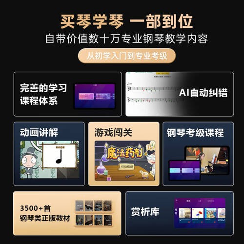 它的AI智能教学系统与自动纠错功能,让学习变得更加轻松与高效。内置的高清护眼显示屏保证了长时间练习的视力健康,而丰富的曲库则帮助孩子们培养音乐素养,提升他们的音乐感受能力。
