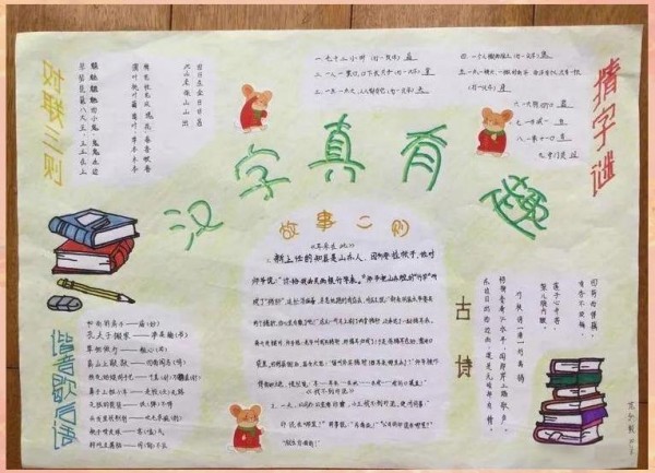 同学们为了这次网络交流活动,精心准备了汉字字谜、谐音歇后语、谐音笑话,还搜集了展现汉字特点的古诗词、对联以及历史故事,并巧妙地制作成手抄报,为活动增添了色彩。学生们在活动中的准备和展示,充分体现了他们对汉字的深入理解与创新表达。