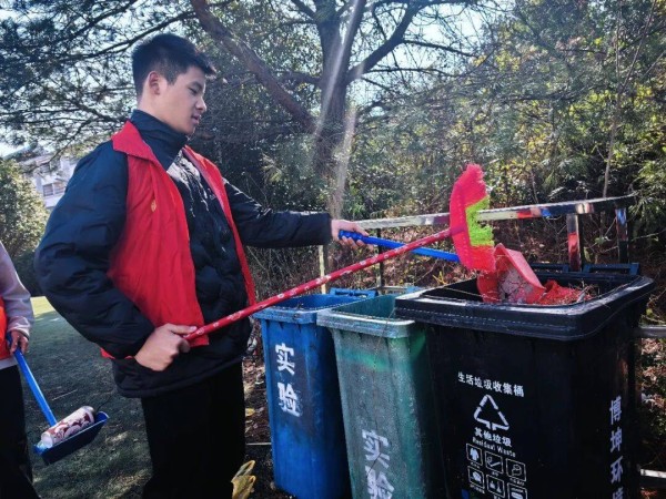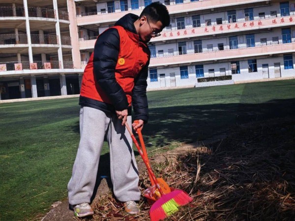 志愿者们分工协作、干劲十足:有的清扫道路落叶,有的清理绿化带中的纸屑杂物,有的整理公共区域的卫生死角……大家不怕脏、不怕累,认真清洁每一处角落。在同学们的共同努力下,校园环境变得更加整洁有序,师生们纷纷为他们的实际行动点赞。