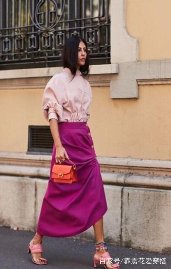 今年的第一款的主打颜色呢,就是玫红色,玫红色跟粉色是姐妹色,粉色能稍微偏温柔一些,玫红色那片的女人一些,如果今年你可以将玫红色,还有卡其色,或者是燕麦色放在一起搭配的话。