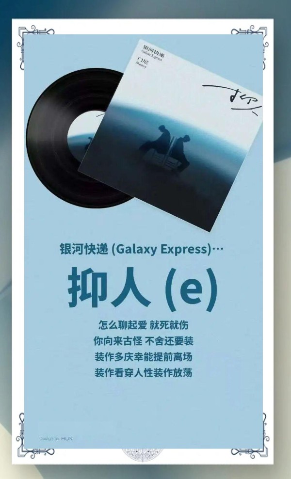 《抑人(e)》——银河快递与门尼的强强合作,两大男声的联手,带来的是无与伦比的听觉盛宴。他们的音色令人沉迷,无法自拔,尤其是那深情的Rap和动情的哭腔,更是让人为之倾倒。而作词的功力,也颇有老薛的风范,字里行间透露出深刻的情感与思考。