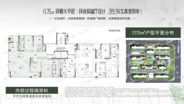 建面约173㎡和175㎡的户型设计更是让人惊艳。173㎡户型公区更大,将餐客厅空间面积拉到约53㎡,满足家庭社交和商务需求。而175㎡户型环绕屏广角视野,楼王位置,让城市美景尽收眼底。此外,超34㎡的奢华主卧套房,配备双台盆带浴缸,为居民提供更私密、更自由的独处空间。