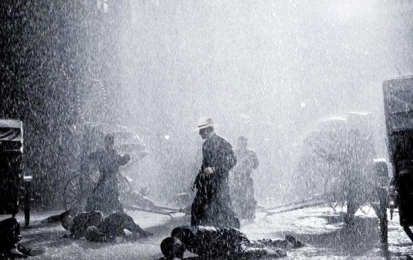 在拍摄《一代宗师》的开场雨夜打戏时,灯光师尔少平巧妙运用灯光技巧,打造出雨丝和帽檐上滴落的雨滴效果,再通过地面水面的反射,生动地呈现了水滴落地的弹跳感。