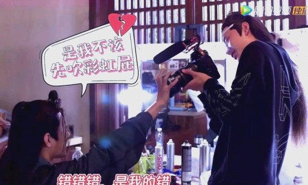 接着,当王一博完成妆容后,他转向了肖战,希望进行拍摄。然而,肖战却连连求饶,不断声称:“都是我的错,你放过我吧,别拍我了。”他还用化妆老师即将结束工作为由,试图阻止王一博的拍摄。但王一博显然并不那么好对付,俗话说得好,“出来混总是要还的。”他只是稍作调整位置,继续进行拍摄。