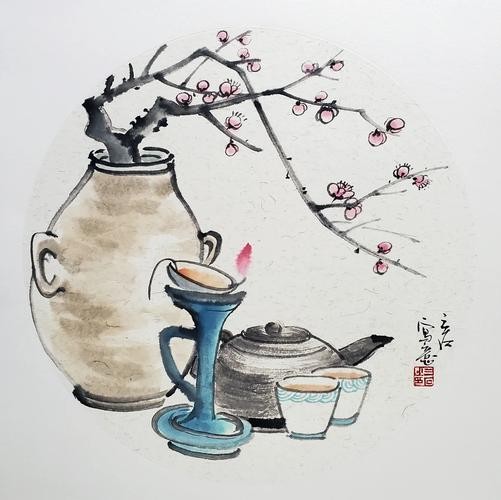 在我深入学习国画的过程中, 尝试自己设计创作无疑是最具挑战性的环节。将工笔花鸟巧妙地融入琵琶的轮廓之中,不仅为画面增添了艺术的韵味,更能为观赏者带来无尽的喜悦与惊喜。每一笔精细的勾画,每一次色彩的巧妙染色,都是我内心情感的真挚流露。