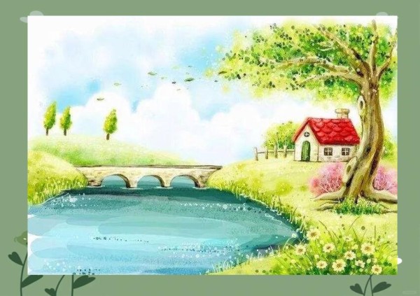 一次偶然的艺术展参观,竟让我对艺术产生了浓厚的兴趣。踏入展馆,我的目光首先被一幅作品深深吸引:画中央,一栋小屋静谧而立,屋前绿意盎然,一位优雅的女子静立于草地上,而左上角,一条小河静静流淌。这幅画作,如同一股清泉,滋润了我对绘画的渴望,点燃了 我学习的热情。