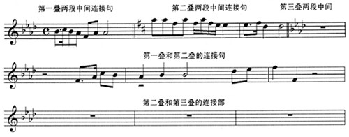 值得注意的是:三叠中,每一叠内部两个段落之间的连接和叠部之间的连接均有不同的处理: