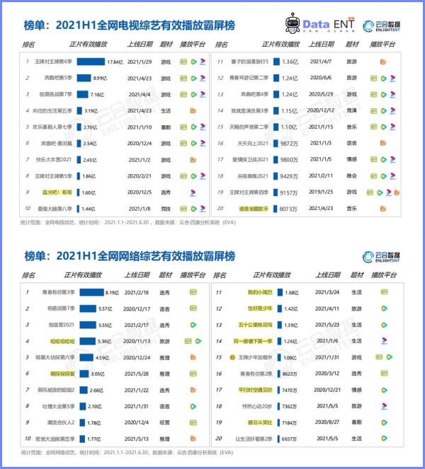 新生代与综N代之争?2021上半年综艺市场大赏
