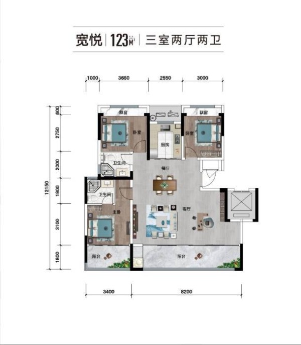 宽景双阳台“观景+休闲”:客厅连接7米长的双阳台,阳台宽度1.8米,一半面积为赠送,实际使用面积约10.8㎡。阳台采用“全景落地窗”设计,无遮挡观景,站在阳台上可俯瞰社区中央景观花园,春季欣赏樱花绽放,夏季聆听蝉鸣鸟语,秋季感受桂花飘香,冬季观赏雪景,四季景观尽收眼底。阳台可分为“休闲区”和“生态区”:休闲区摆放藤椅、小茶几和吊床,周末可在这里晒太阳、喝茶、阅读,享受自然时光;生态区摆放多肉植物、绿萝、常春藤等盆栽,打造“室内小花园”,既美化环境,又能净化空气,提升室内空气质量。