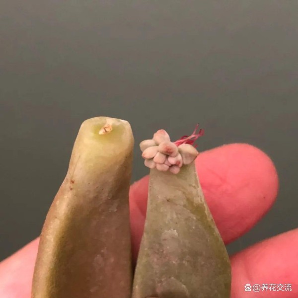 很多花友喜欢养多肉植物,就是因为它可以通过叶片扦插的方法进行繁殖,每一片叶子都能长出一两个小芽。