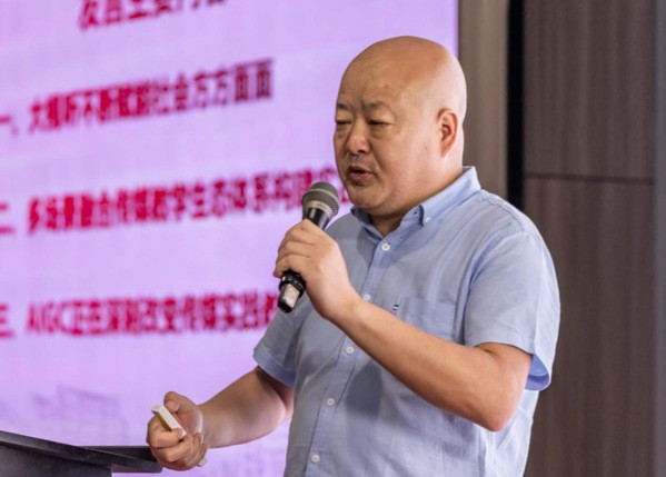 浙江传媒学院全媒体实验创新中心副主任、中国高校影视学会实验教学专业委员会副主任兼秘书长胡一梁教授级高工作了题为《大视听赋能社会,传媒实践教学生态正嫣然》的主题报告,从技术不断驱动经济发展、当代社会新拐点新范式和大视听逐渐成为信息表达的主要内容等方面分析了视听信息不断正在赋能社会方方面面并不断驱动社会信息化、知识化、自主化,同时分享了浙江传媒学院在多场景融合传媒教学生态体系构建的案例,指出AIGC正在深刻改变传媒实践教学原有模式。