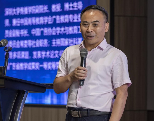 深圳大学传播学院副院长黄玉波教授作了题为《价值引领 毕设突破 实战贯穿”--新闻传播创新型人才培养的深大改革与探索》的主题报告,简要介绍了深圳大学传播学院人才培养情况,分享了创新型人才实战化培养模式以及课程思政实战化、本科毕设真实选题、递进式实战教学机制、创建“一核双翼”实战化教学平台等主要举措,指出今后专业建设必须与国家战略需求、信息技术与智能产业发展深度融合与跨界协同。