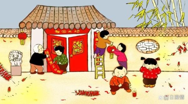 相传最早的春联是五代蜀国蜀主孟昶题写的“新年纳余庆;嘉节号长春。” 王安石此诗句意为:灿烂温暖的朝阳照耀着千家万户,在这和煦温暖的阳光里,家家户户争先恐后换却桃符,节日呈现出一派欣欣向荣、生机盎然的新气象。 诗人通过对阳光辉耀千门万户的明朗阔大的背景的书写,进一步给春节增添了鲜亮、明丽的色彩,使人们的节日生活呈现出一派光明灿烂的景象。