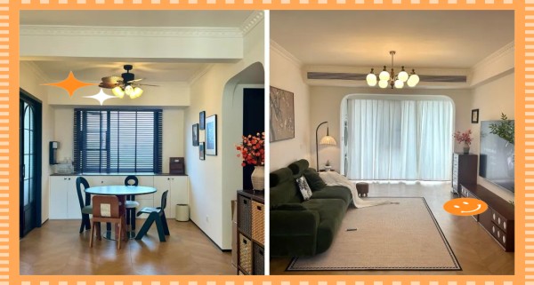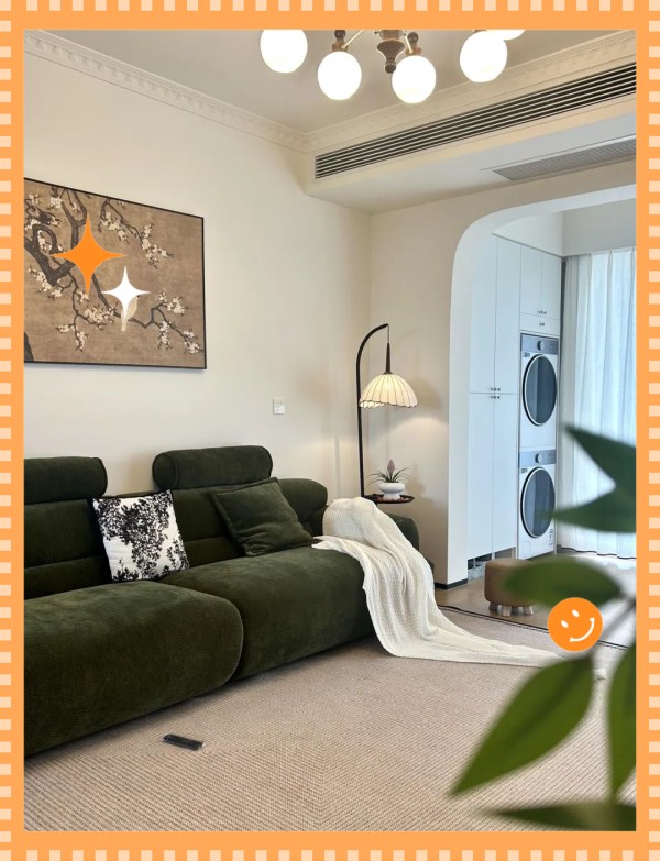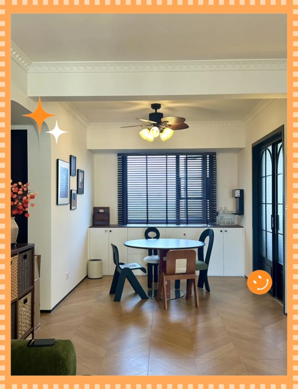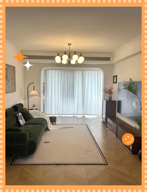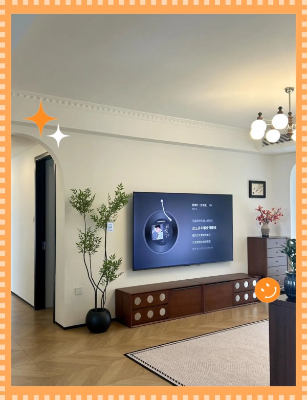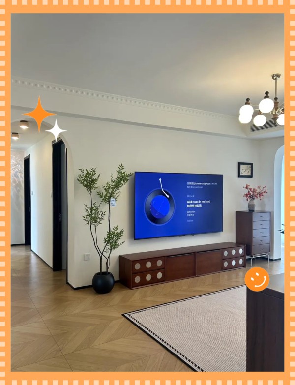 她家的客厅布置得十分宜人,既无繁复的装饰,又显得整洁而温馨。尽管整体装修风格简约,但每一处细节都流露出主人的精心设计。