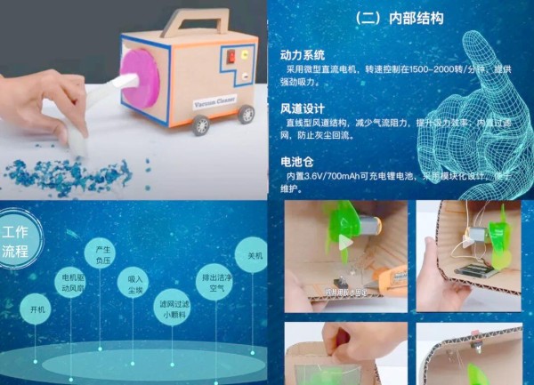 他们以奇思妙想为蓝本,以团结协作为动力,成功打造出一款既实用又创新的电动桌面吸尘器。孩子们观察日常问题,如桌面灰尘、纸屑,设计出创新的吸尘器,解决“隐形障碍”。在这一过程中,他们不仅将“小麻烦”转化为了“小便利”,更在科创之旅中收获了满满的成长与喜悦。