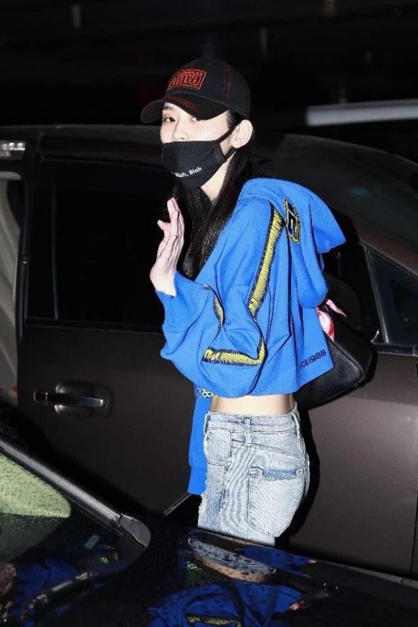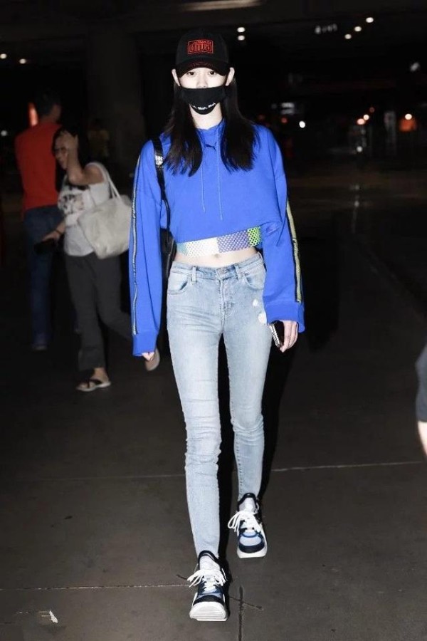 奚梦瑶机场露蛮腰秀腹肌,半戴口罩露“猪猪鼻孔”,撞脸欧阳娜娜