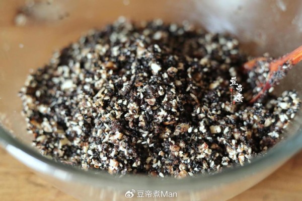 馅料:黑芝麻100克、白芝麻50克、花生仁1大把、核桃仁1把、面粉80克、芝麻油两匙、细砂糖3匙、红糖5大匙