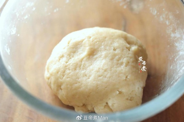 戴上一次性手套,搓揉面团一会让面团产生一些筋度。此时的面团还不能使用并且筋度也不好,盖上保鲜膜静置三十分钟。这时你会发现面团的筋度变好了,我们再揉几下就能使用了。