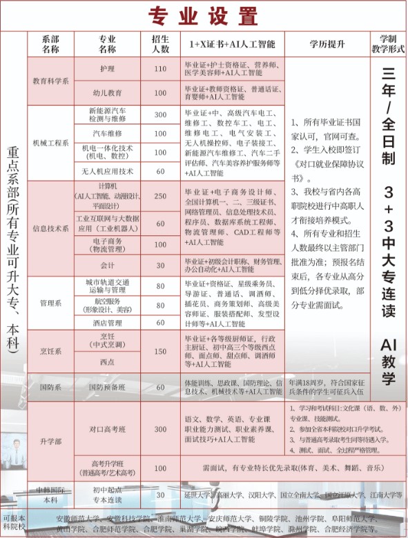 针对有升学需求的学生,学校开设对口升学班,通过“文化课+专业技能课”系统复习,助力学生冲刺安徽科技学院、合肥师范学院等本科院校。对于计划创业的学生,学校提供特色课程,涵盖选址策略、供应链管理、线上营销等实战内容,并设立创业孵化基地,为优秀项目提供资金支持与资源对接。