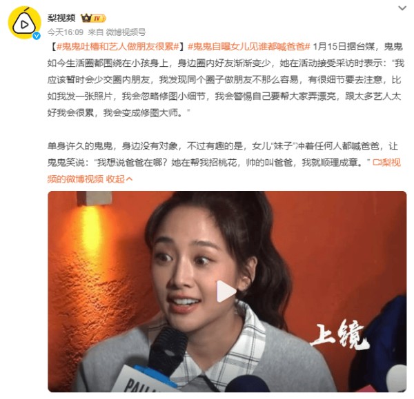 有趣的是,鬼鬼提到女儿“妹子”冲着任何人都喊爸爸,鬼鬼笑称:“我想说爸爸在哪?她在帮我招桃花,帅的叫爸爸,我就顺理成章。”(来源:梨视频)