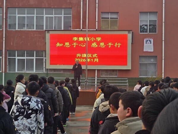 2026-01-05 14:58:59 | 分享到:为弘扬中华民族传统美德,使学生常怀感恩之心,增强学生们的集体荣誉感和民族责任感。1月5日上午,郾城区李集镇小学举行了以“知恩于心 感恩于行”为主题的升旗仪式。