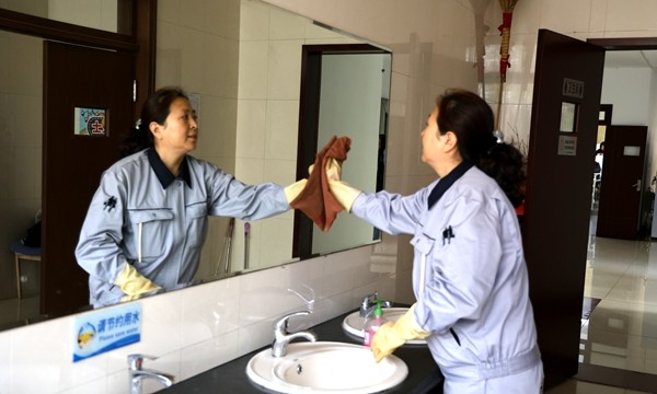 夏天有个女同学穿白裙子不小心沾了污渍,蹲在卫生间里用纸巾反复擦拭却越擦越慌。李清华路过看到,立刻回工具间拿来洗洁精,接过衣服帮学生洗干净。看着裙子重新变得洁白,同学连声道谢,开心地向她比心。