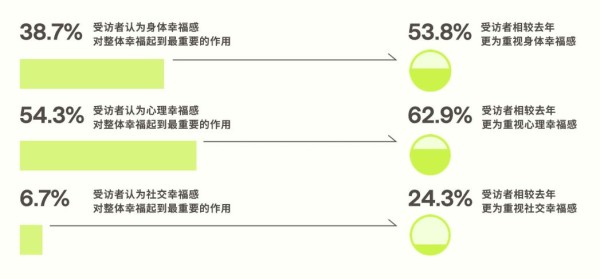 这种差异在日常生活中随处可见。53.8% 的受访者比去年更重视身体幸福感,62.9% 关注心理状态,但只有 24.3% 的人愿意在社交上多花心思。仅 6.7% 的人认为社交是幸福的 “最重要” 因素,不少人坦言 “下班只想宅家,社交太耗精力”。